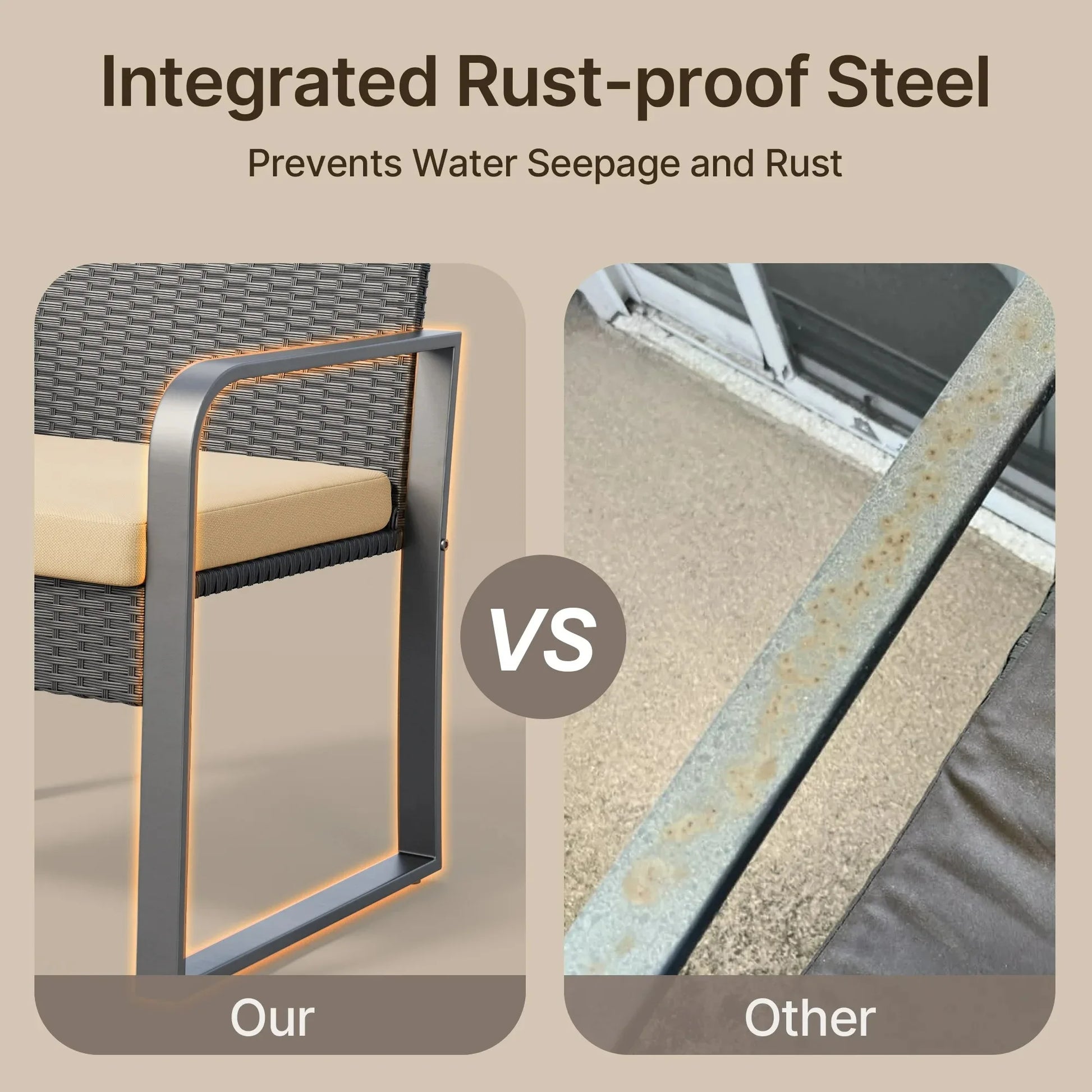 Transform your outdoor space into a cozy haven with the 3 Piece Patio Chair Set with Glass Coffee Table. This stunning outdoor rattan furniture set, designed for your garden, porch, or bistro yard, features a sophisticated gray cushion that complements any decor. Crafted from durable PE rattan and supported by a robust steel frame, this furniture set is built to withstand the elements while providing exceptional comfort.
