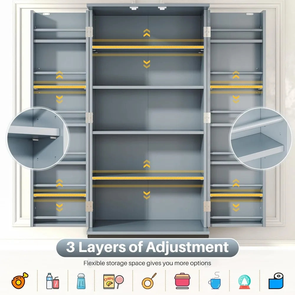 Upgrade your kitchen organization today with this freestanding pantry storage cabinet. Its blend of elegance and practicality not only enhances your home but also simplifies your daily routine. Order yours now and experience the difference!