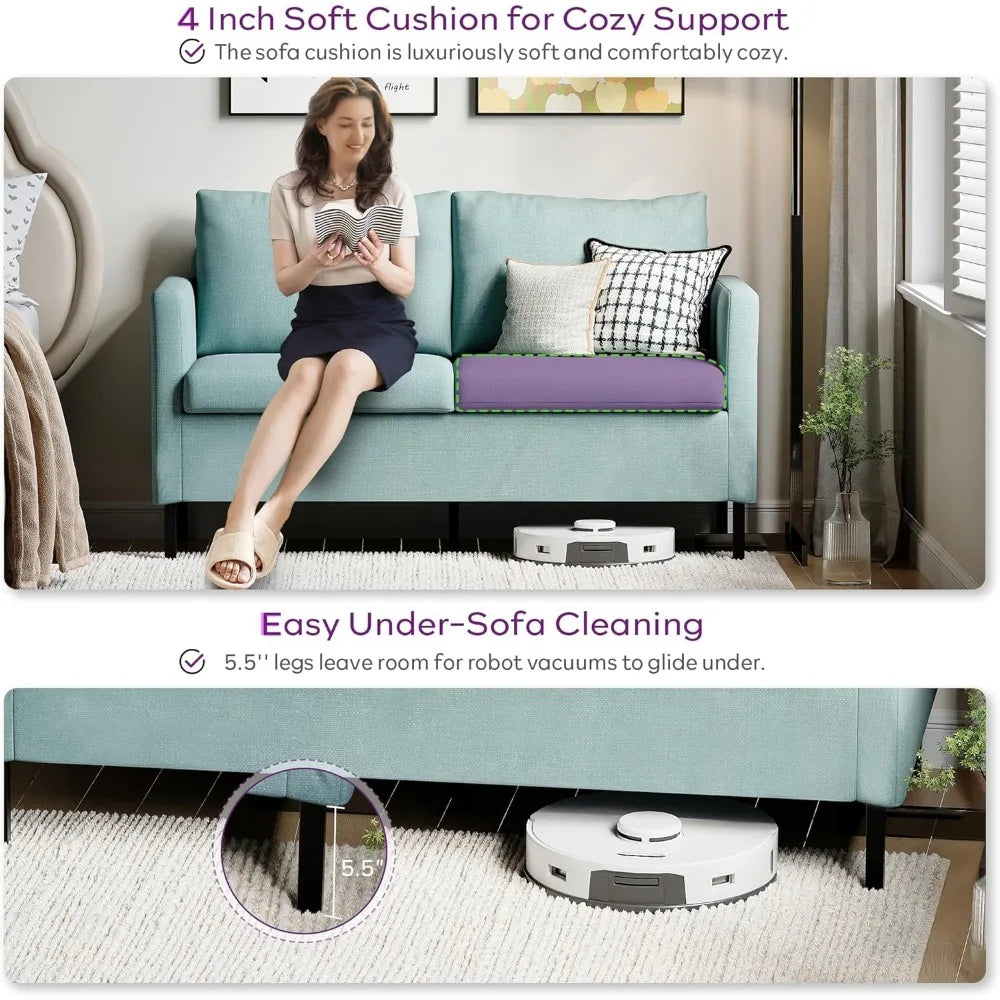 Introducing the 51 Inch W Linen Fabric Upholstered Modern Loveseat Sofa Couch in a stunning Aqua Blue—the perfect addition to your living room! This 2-seater furniture combines contemporary design with unparalleled comfort, making it an ideal choice for modern homes.