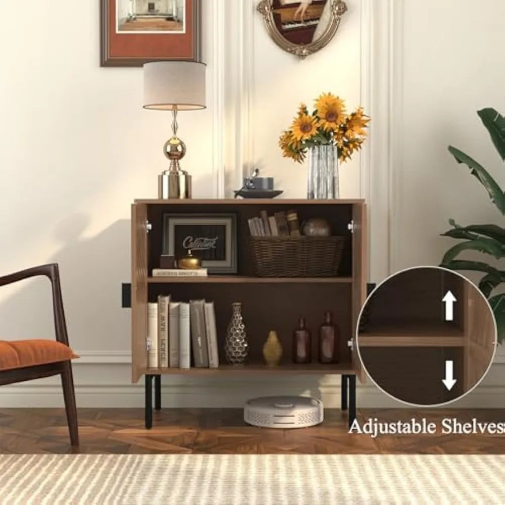 Accent Cabinet with 2 Hollow Doors Modern Buffet Cabinet with Adjustable Shelves and Metal Handle Decorative Credenza for Living Room