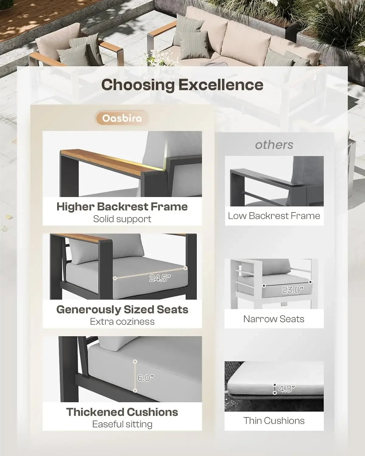 - High-Quality Construction: Made from premium aluminum, this furniture set is built to withstand the elements.