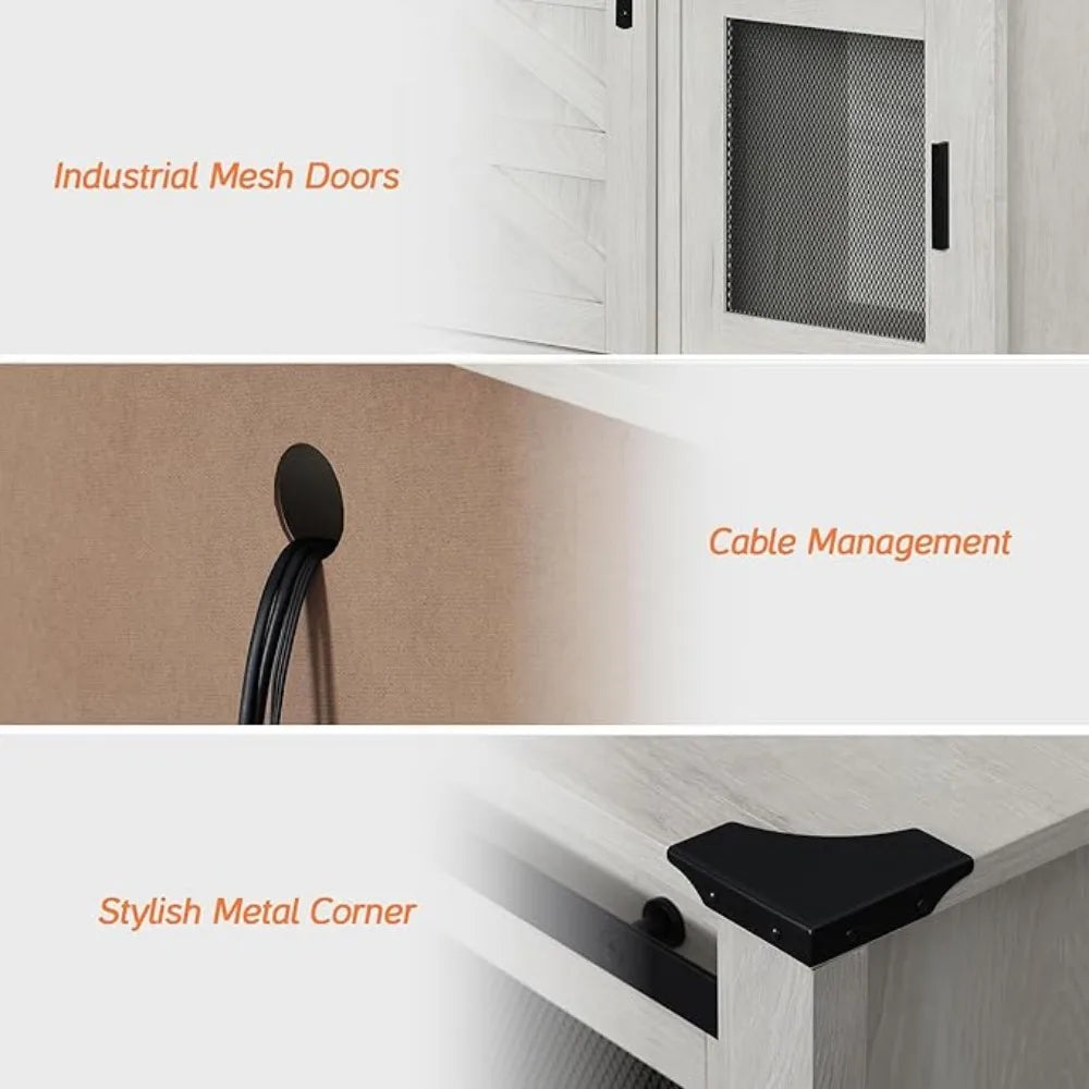- Simple & Exquisite Design:The TV stand is made of unique spliced wood and fixed with metal bars and rivets. The simple frame and characteristic barn door design elements are very suitable for your rustic, industrial, or retro-style home decoration