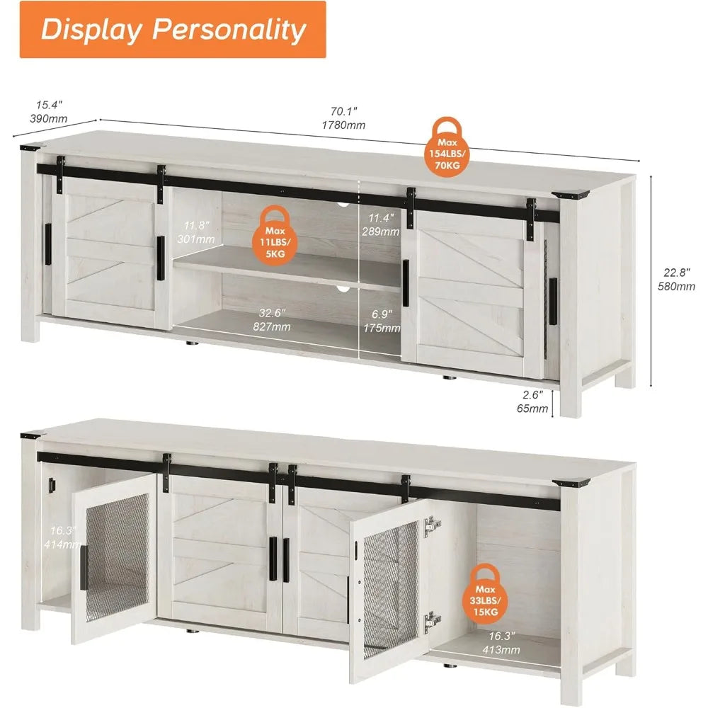 Farmhouse TV Stand for 75 inch TV, 70" Wood Sliding Barn Door Media TV Console Table with Storage Shelf, Entertainment Center
