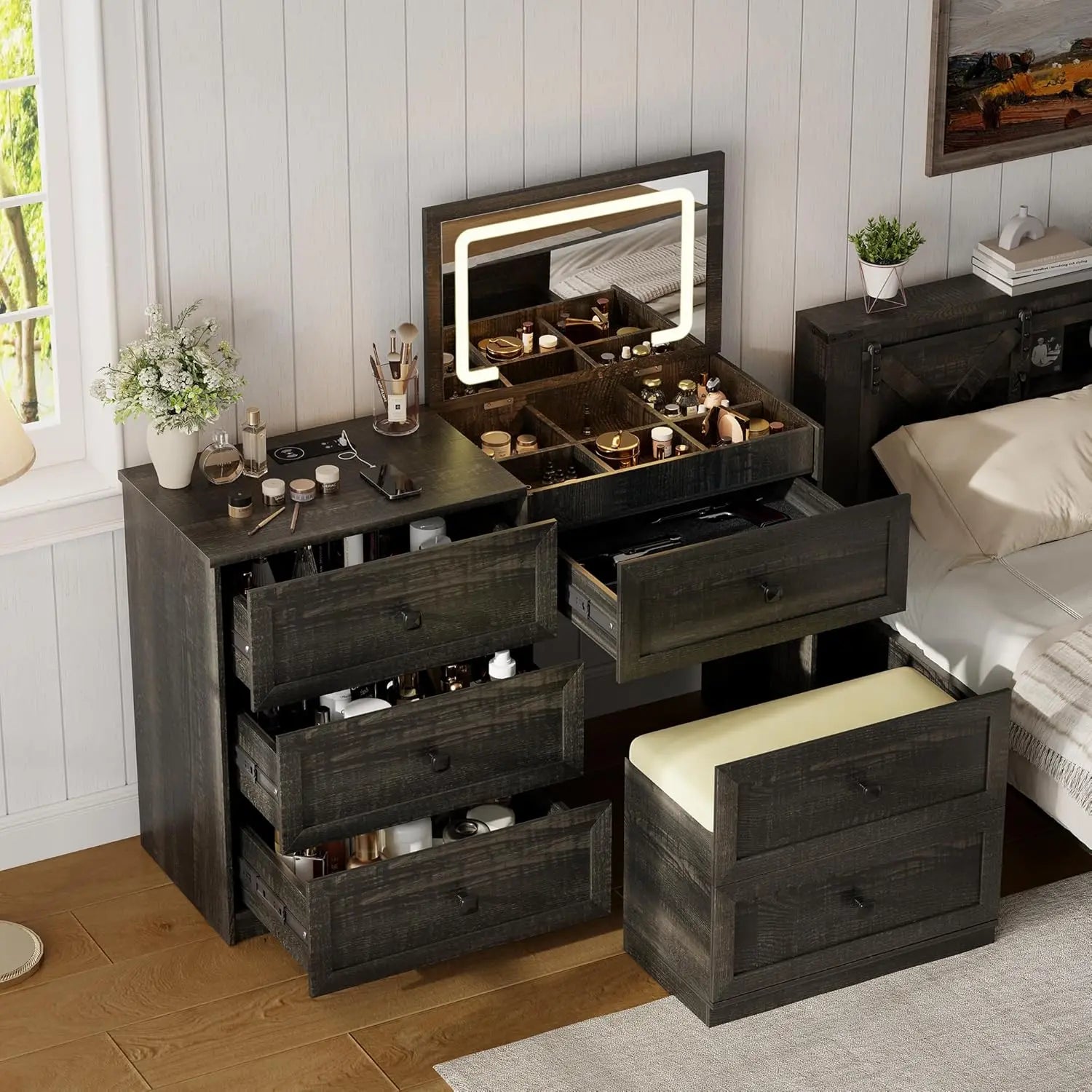 Elevate your daily routine with this versatile and stylish Farmhouse Vanity Desk. Don't miss out on the chance to own a functional piece that adds beauty and organization to your space. Order yours today!