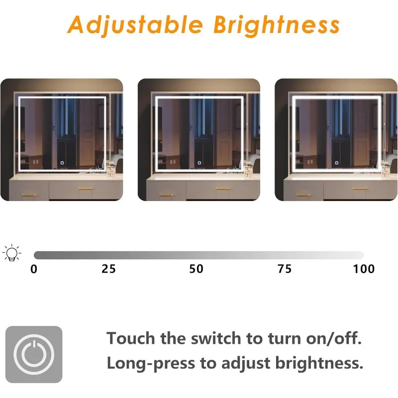 - Spacious Oversized Mirror: Measuring 40''L x 25.6''H, the extra-large mirror provides a comprehensive view, ensuring you can check your appearance from every angle. The narrow bezel design enhances the aesthetic appeal while the innovative dimmable illumination strip allows you to adjust the brightness to perfection.