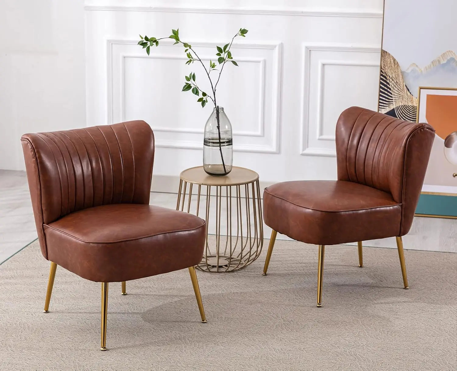 Introducing our Leather Accent Chairs Set of 2 – the perfect blend of modern style and functional design. These armless upholstered waterproof slipper chairs are ideal for any contemporary space, offering an elegant touch with their luxurious leather finish and striking golden legs. Perfect for living rooms, bedrooms, or even office spaces, these comfy wingback side chairs are designed to enhance your home decor while providing exceptional comfort.