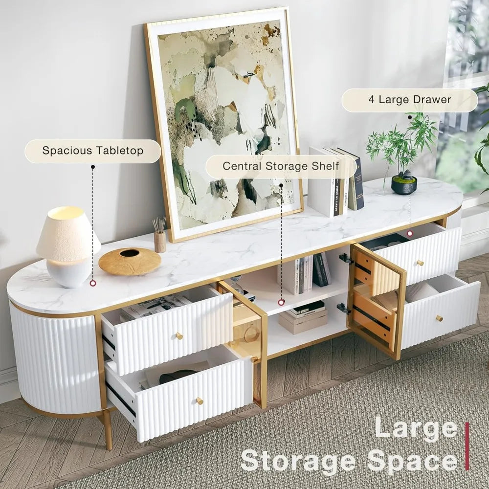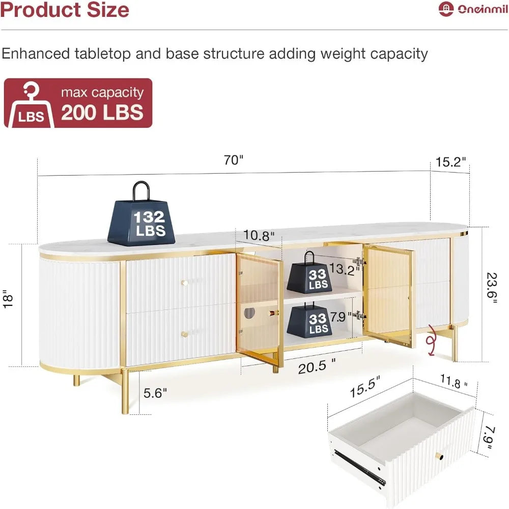 Introducing the Luxury 70 Inch Fluted TV Stand, the perfect modern entertainment center designed for TVs up to 75 inches. This exquisite media console not only enhances your living space but also brings a touch of sophistication with its stunning faux marble top and elegant fluted design. Crafted with a keen eye for detail, this TV stand combines aesthetics with functionality, making it a standout piece in the living room furniture category.