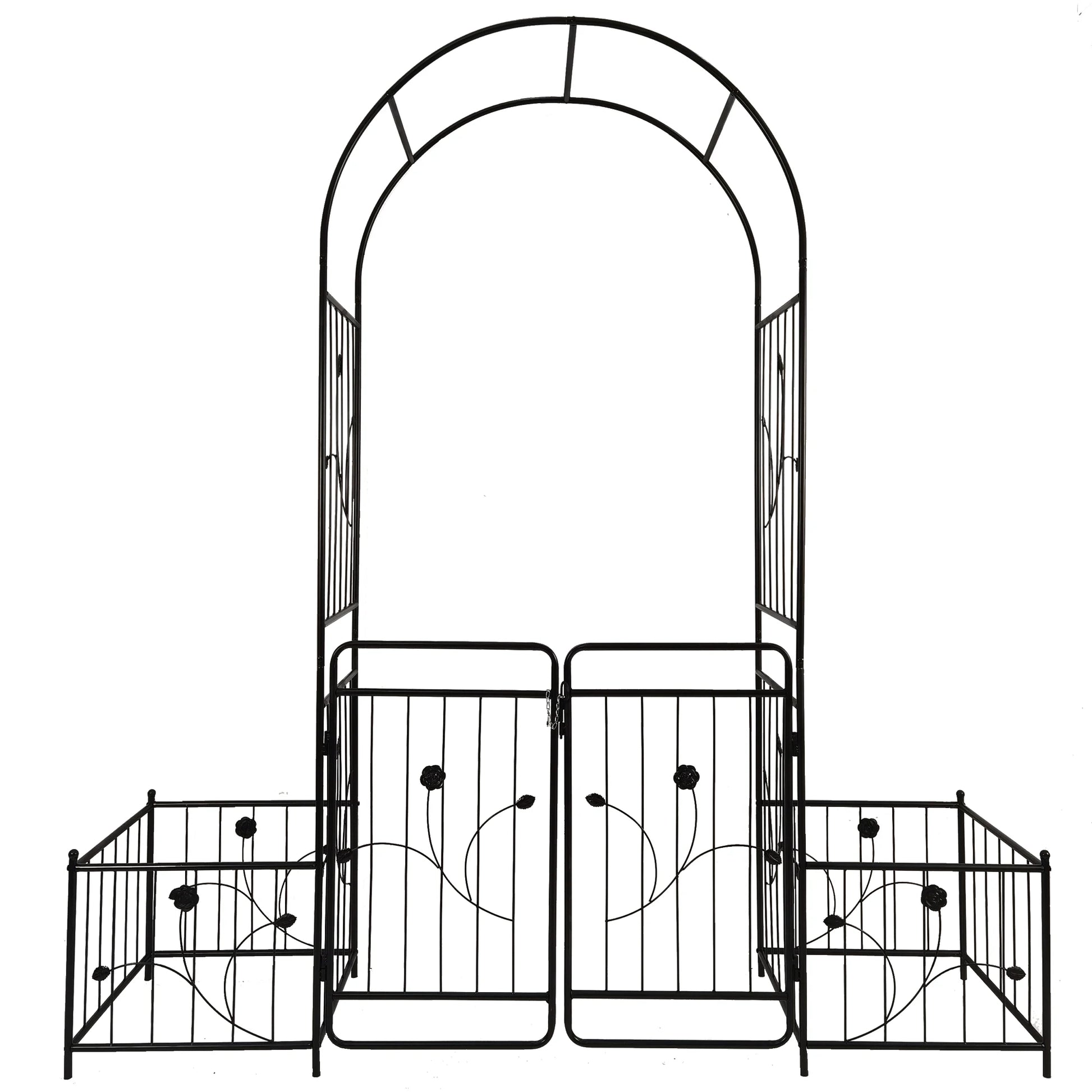Metal Garden Arch with Gate 6.63 Feet Wide x 7.2 Feet High Climbing Plants Support Rose Arch Outdoor Black