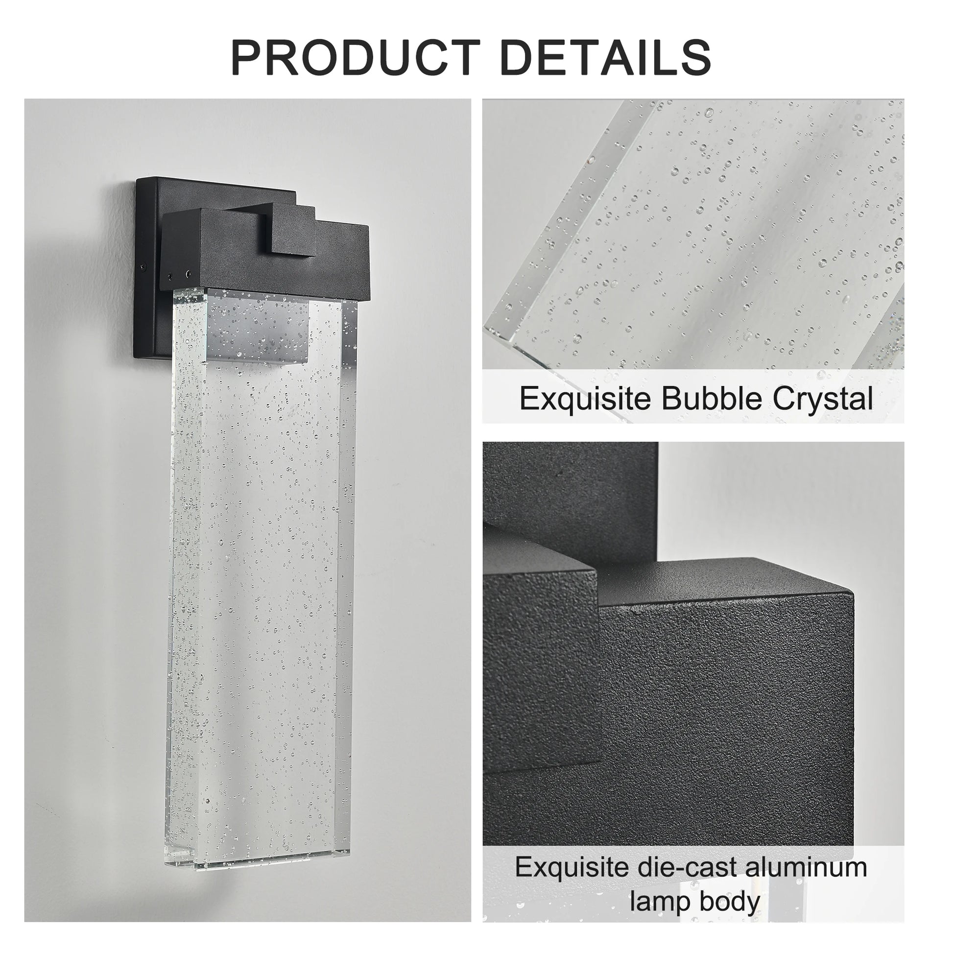 Outdoor Wall Light Fixture Waterproof LED Wall Sconce with Bubble Crystal Black Finish for Porch Patio and Garden
