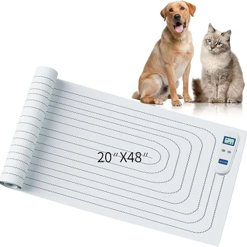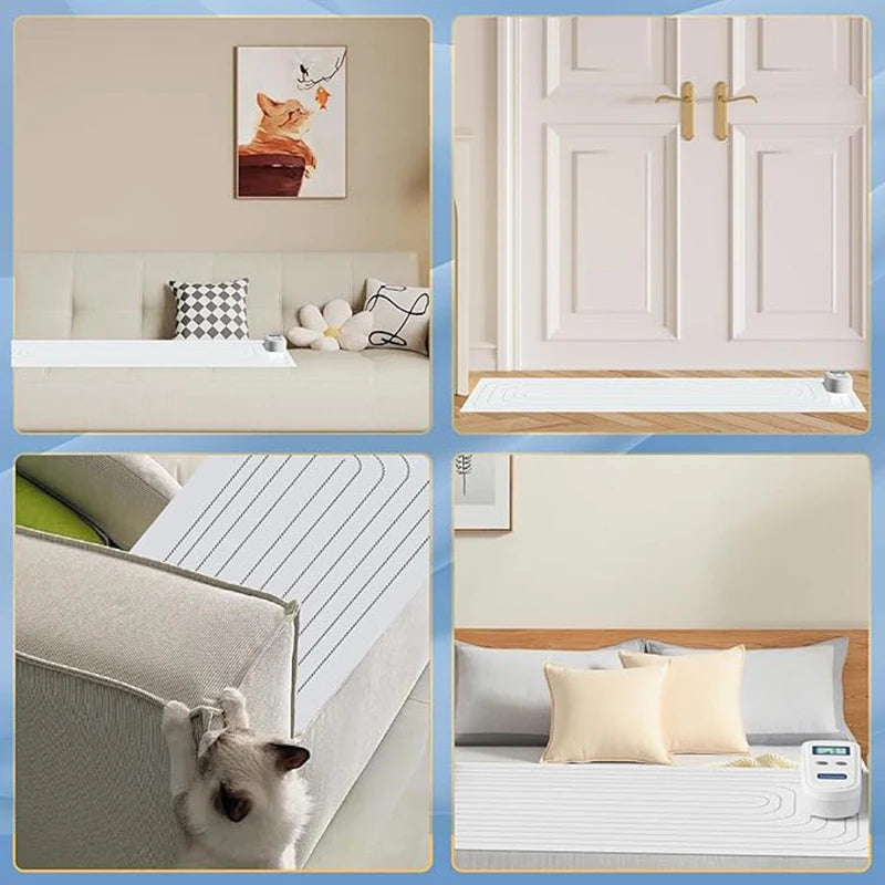 【 pet shock mat】 cat deterrent -with safety static correction,90 second automatic pulse+60 second rest period, adjustable sensitivity, prevents cats and dogs from scratching furniture, can quickly attract the attention of pets, and effectively control their behavior