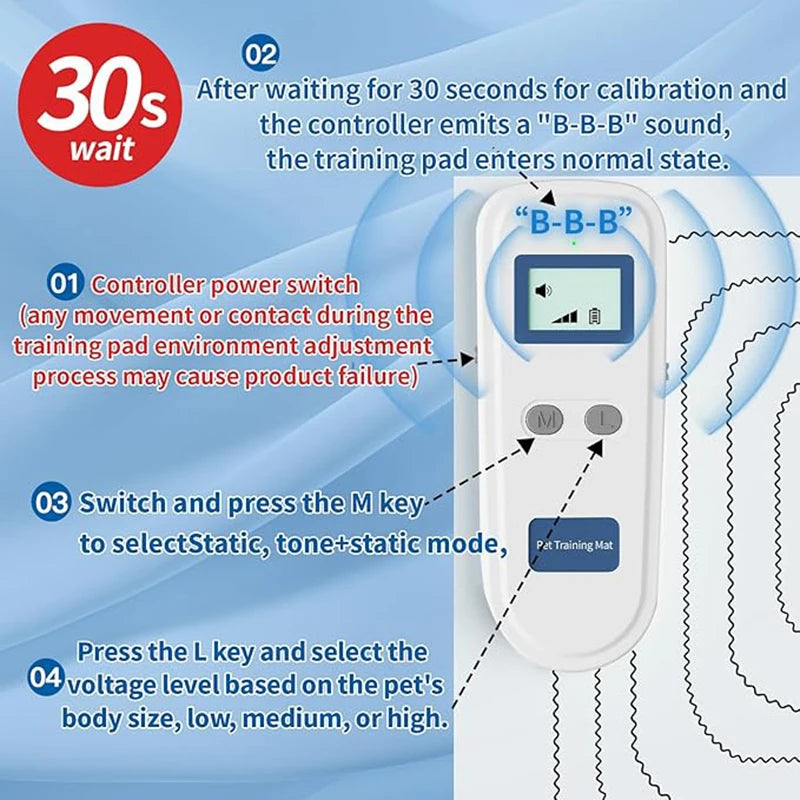 【 shock pads for couch for dogs】 After turning on the controller, please wait patiently for 30 seconds, make a "B-B-B" sound, and enter normal working mode. cat shock mat,Product testing is invalid, Please turn off the power switch and repeat the above steps.