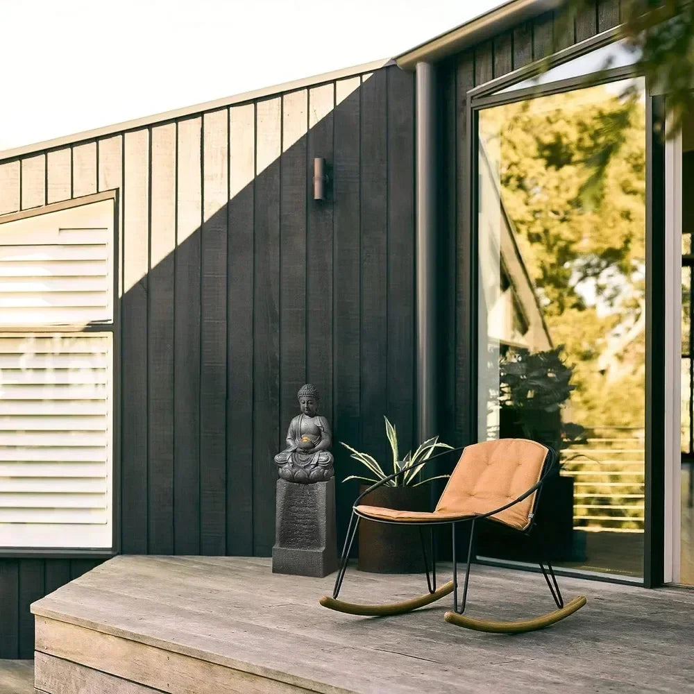 Resin Meditating Buddha Patio Fountain with LED Lights Zen Water Fountain Decor for Garden Backyard Deck