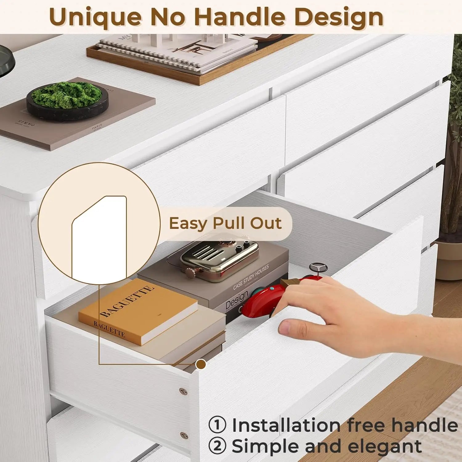 Transform your bedroom with the White Wooden Dresser for Bedroom, a stunning and practical furniture piece that combines elegance with functionality. Measuring 51.5 inches long, this clothing storage chest features a sleek white finish, making it a perfect addition to any bedroom décor. With 8 spacious drawers, each boasting a depth of 14.6 inches, you can easily organize clothes, toys, books, and personal items, effectively helping you get rid of clutter.